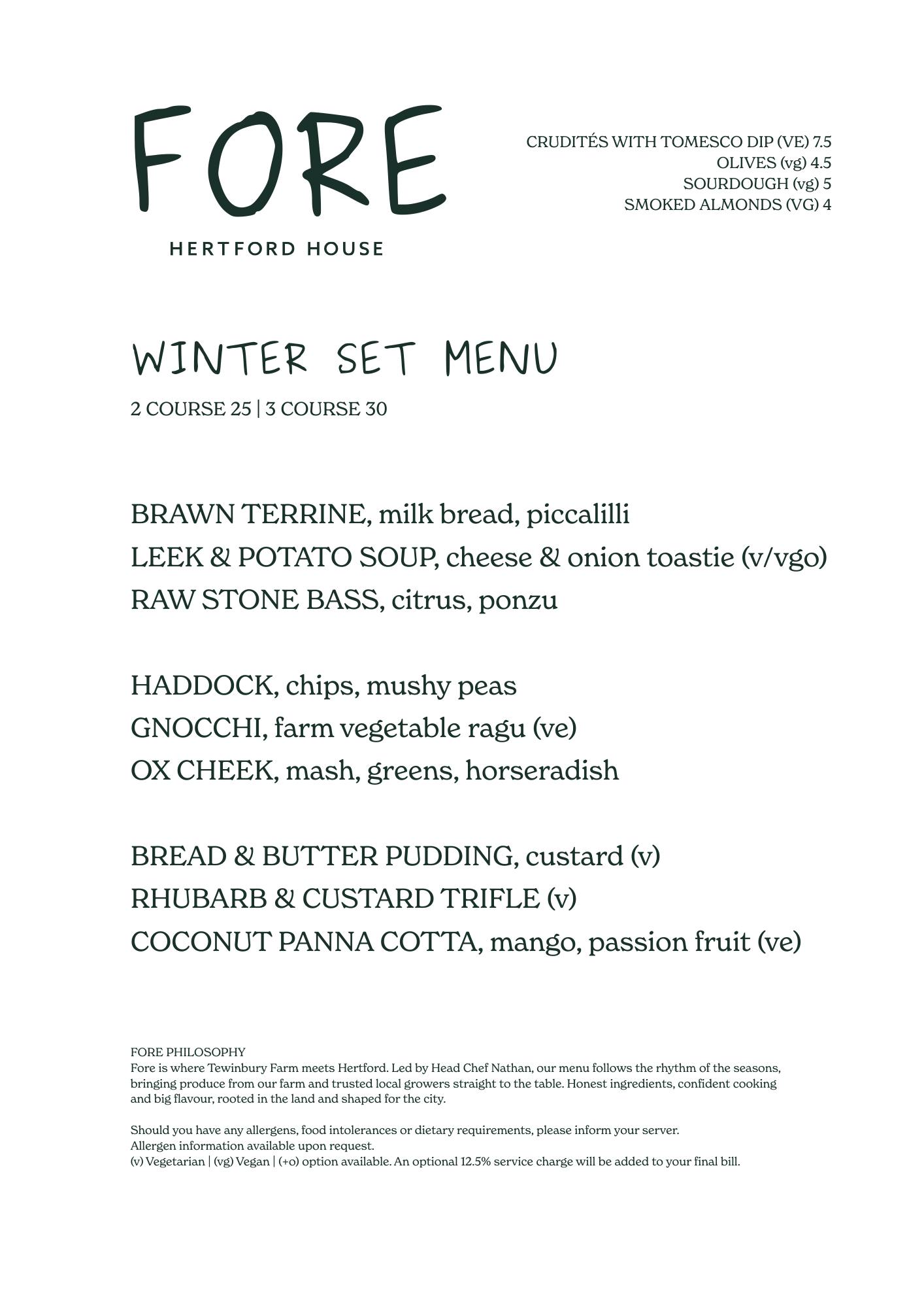 Season-led plates, straight from Tewinbury Farm into the heart of Hertford. Led by Head Chef Nathan, the kitchen cooks with what’s growing, what’s in season and what tastes best right now. Produce from our farm sits alongside ingredients from growers and makers we trust, bringing food with real provenance to the table. It’s honest cooking with bold flavour. Ingredients with a story. Plates designed to share, linger over and come back for.
